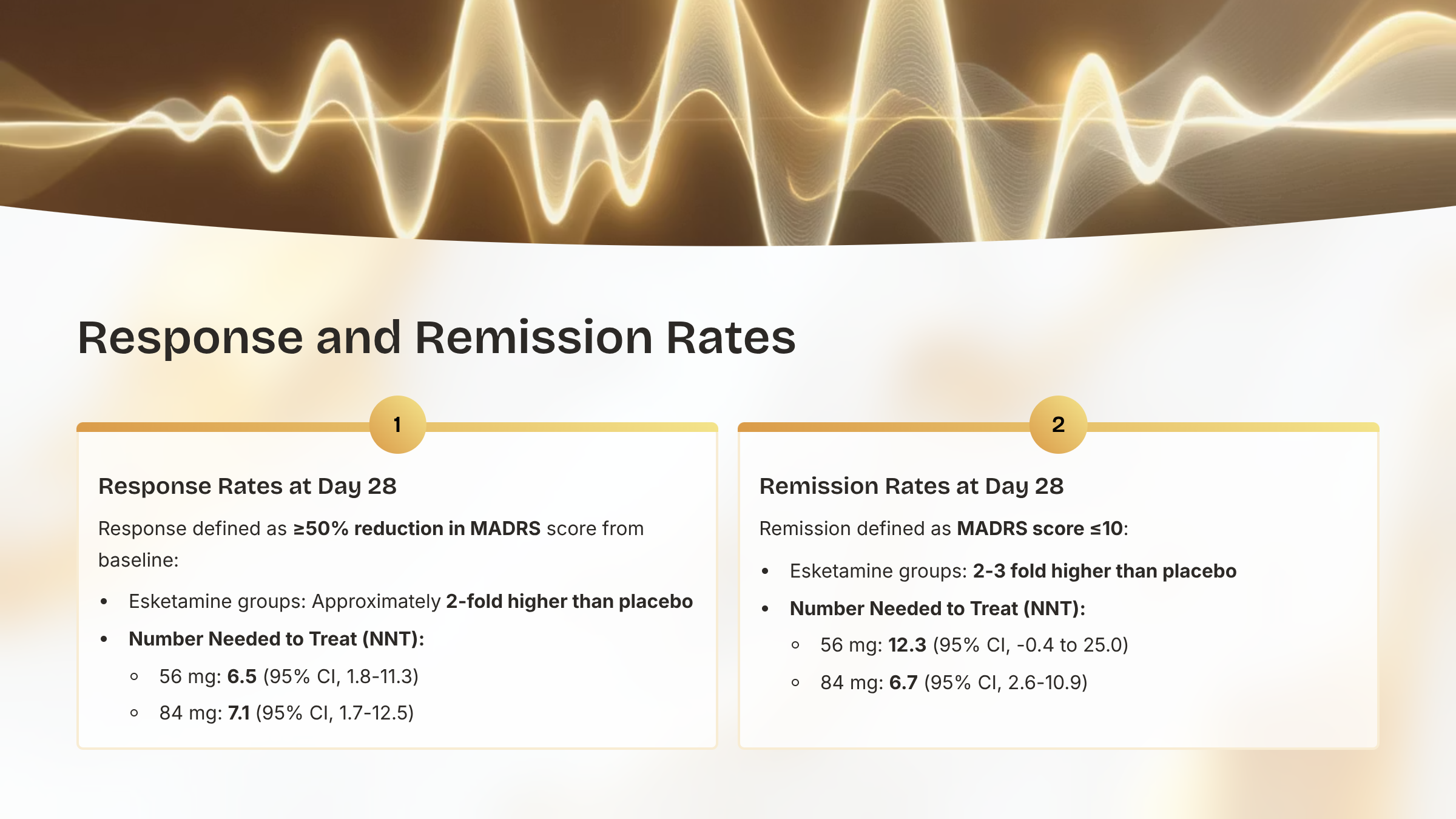 Response rates were approximately 2-fold higher in both esketamine dose groups vs placebo.