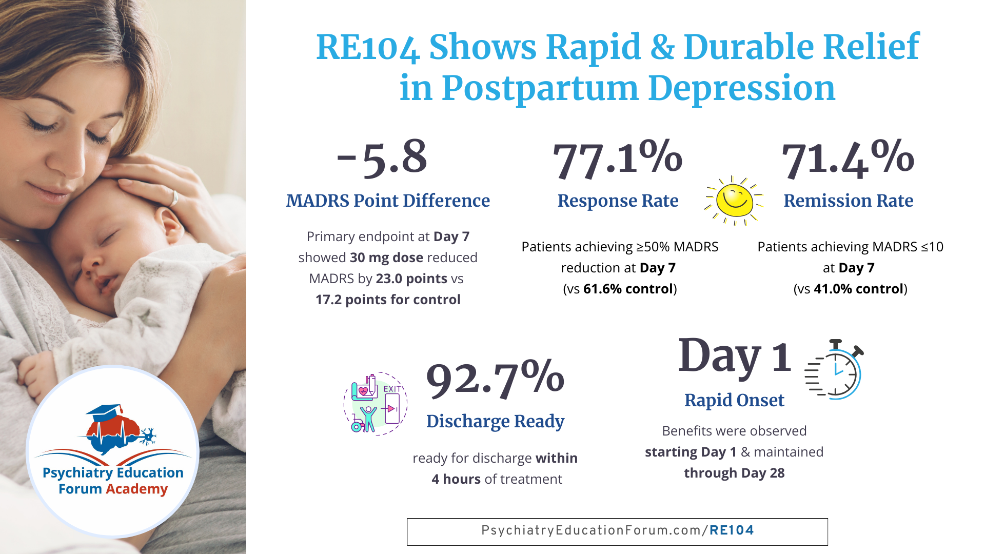 For clinicians managing PPD, RE104 may represent a paradigm shift—offering patients and families hope for faster, more accessible recovery.